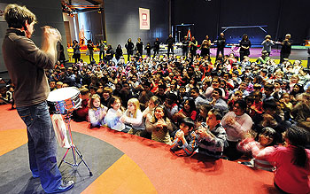 Als erfahrener Reiseleiter hat Michael Bradke nicht nur Gitarre und Darbouka im Gepäck, sondern zeigt, wie in aller Welt mit Händen, Fingern, Wangen, Kopf und Mund Musik gemacht wird. Die Reise geht nach Spanien, Indien, Afrika, Amerika, an den Nordpol und in die Südsee. Auf dem Weg, der auf einem großen Globus verfolgt wird, erleben und erlernen die Reisenden musikalische Spiele, Musik, Tänze und bei den „Klatschgeschichten“ 15 Klatscher rund um die Welt.